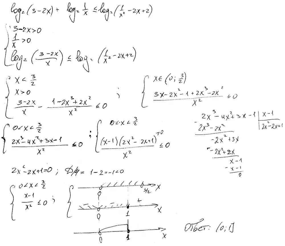 Решите неравенство \(\log_2(3-2x)+\log_2\dfrac1x\leqslant\log_2\left(\dfrac1{x^2}-2x+2\right)\)