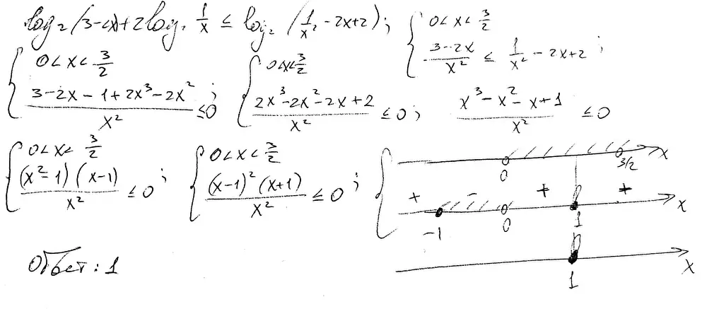 Решите неравенство \(\log_2(3-2x)+2\log_2\dfrac1x\leqslant\log_2\left(\dfrac1{x^2}-2x+2\right)\)